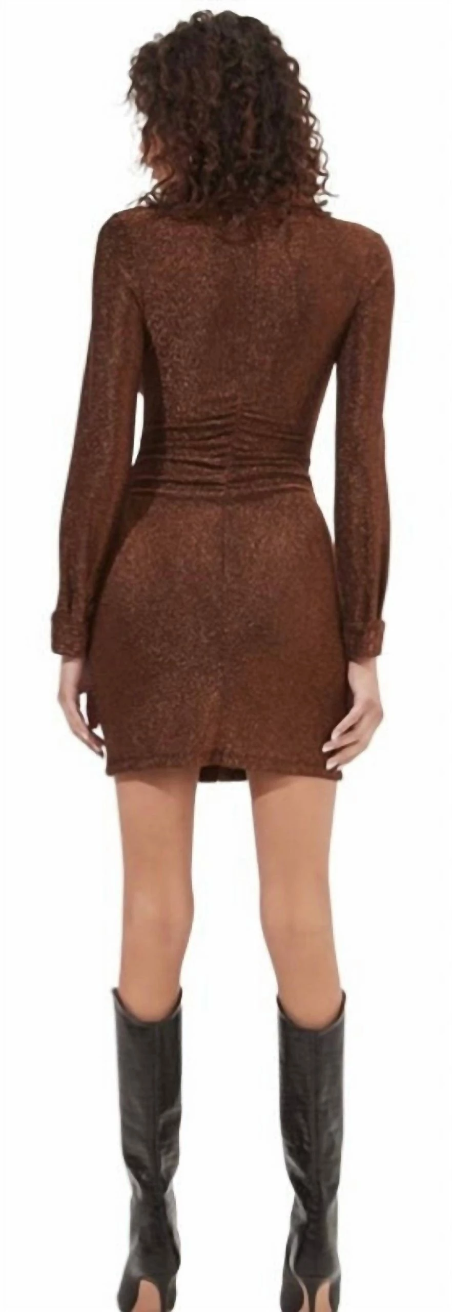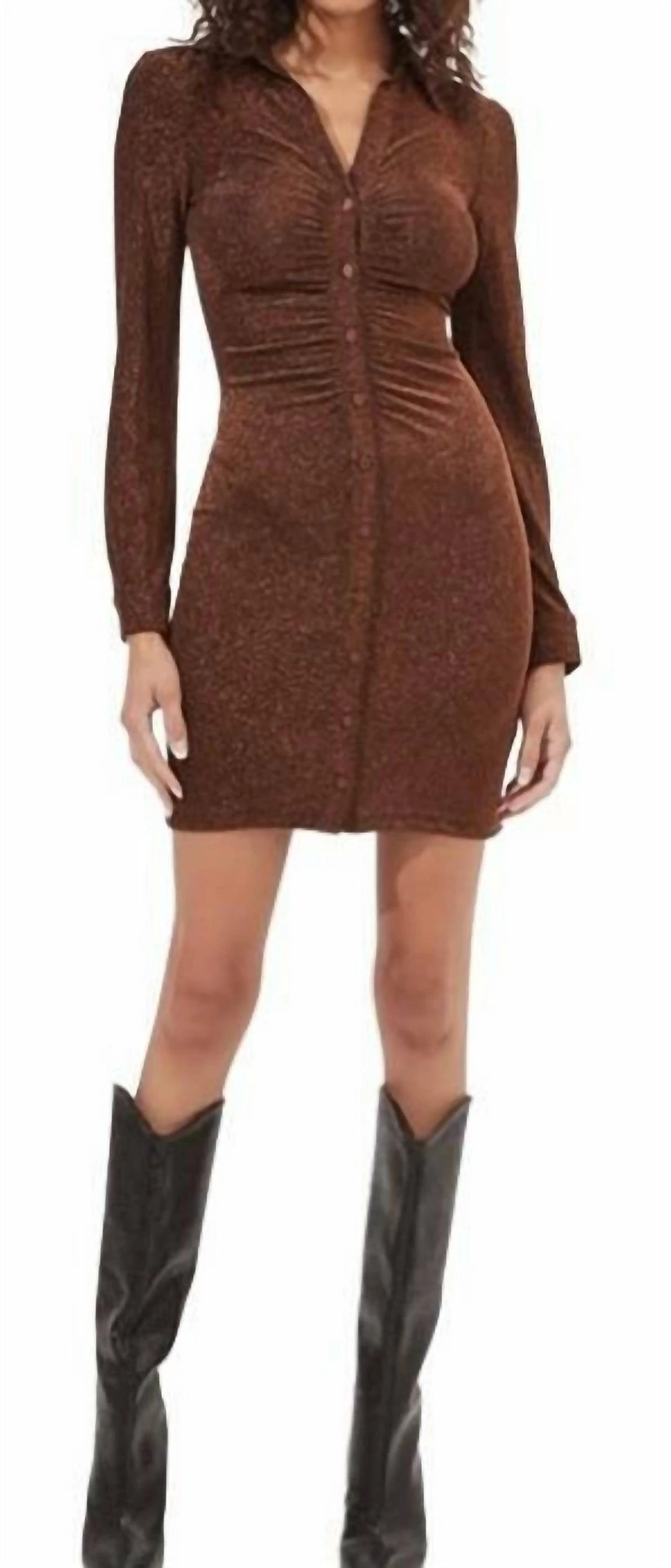METALLIC RUCHED BUTTON DOWN MINI DRESS