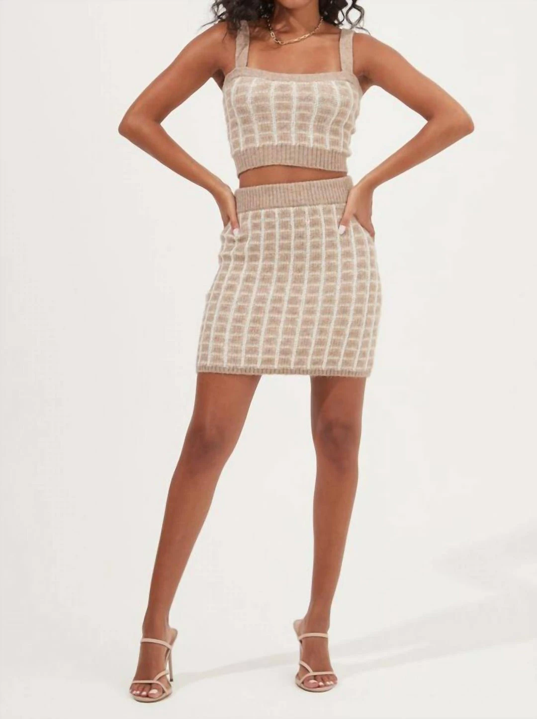 Knit mini skirt with elastic waist. Slightly stretchy material.