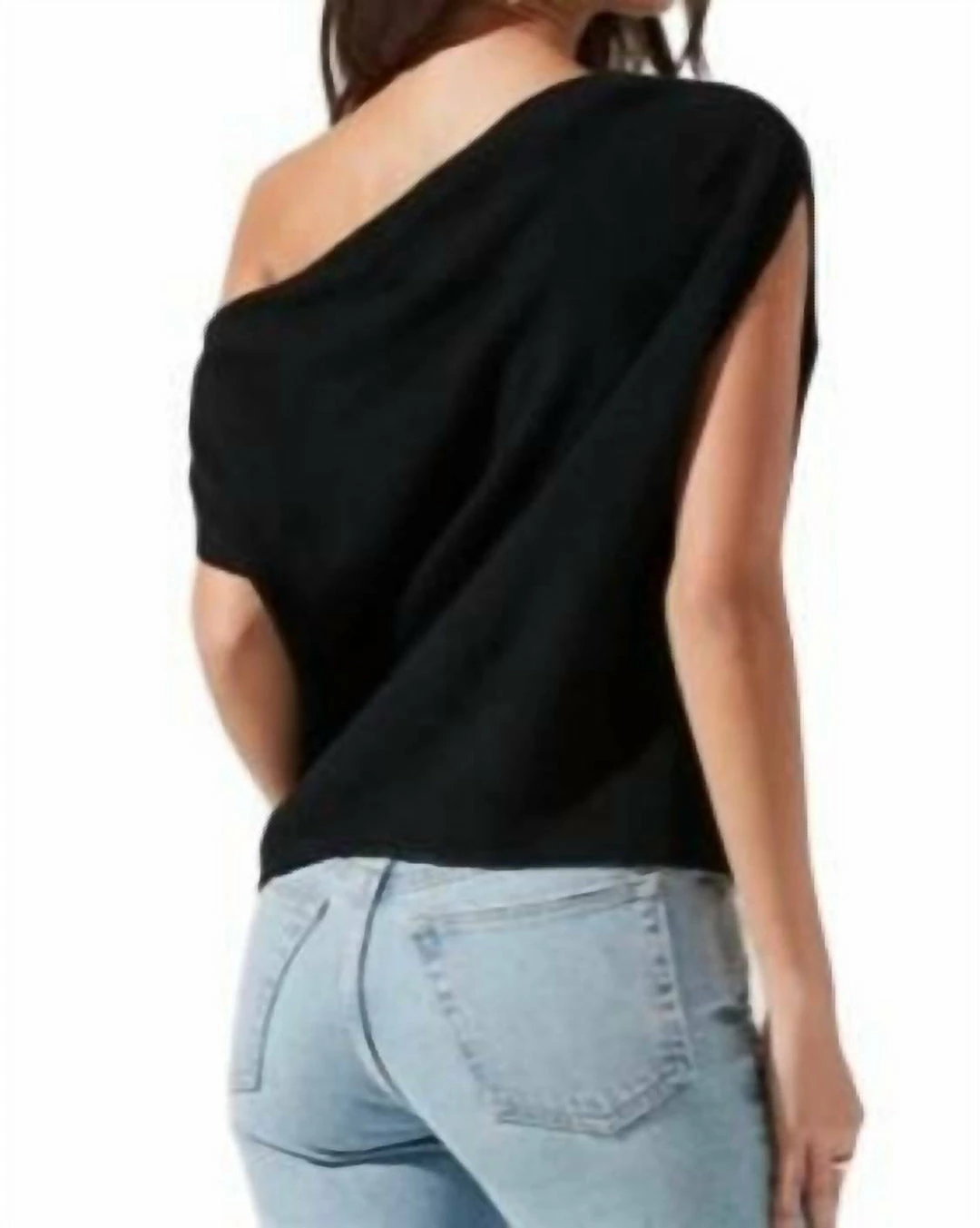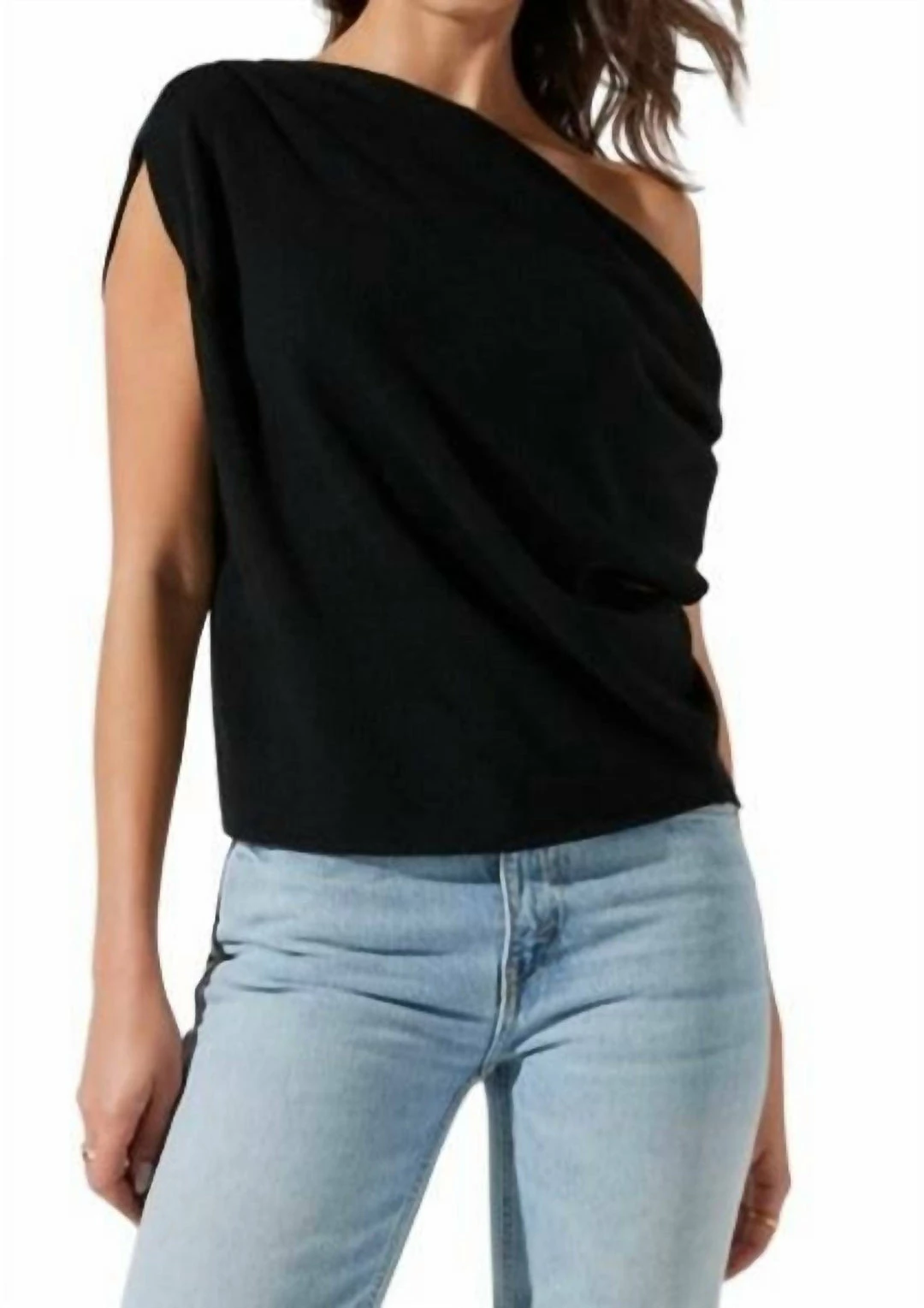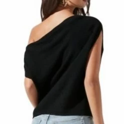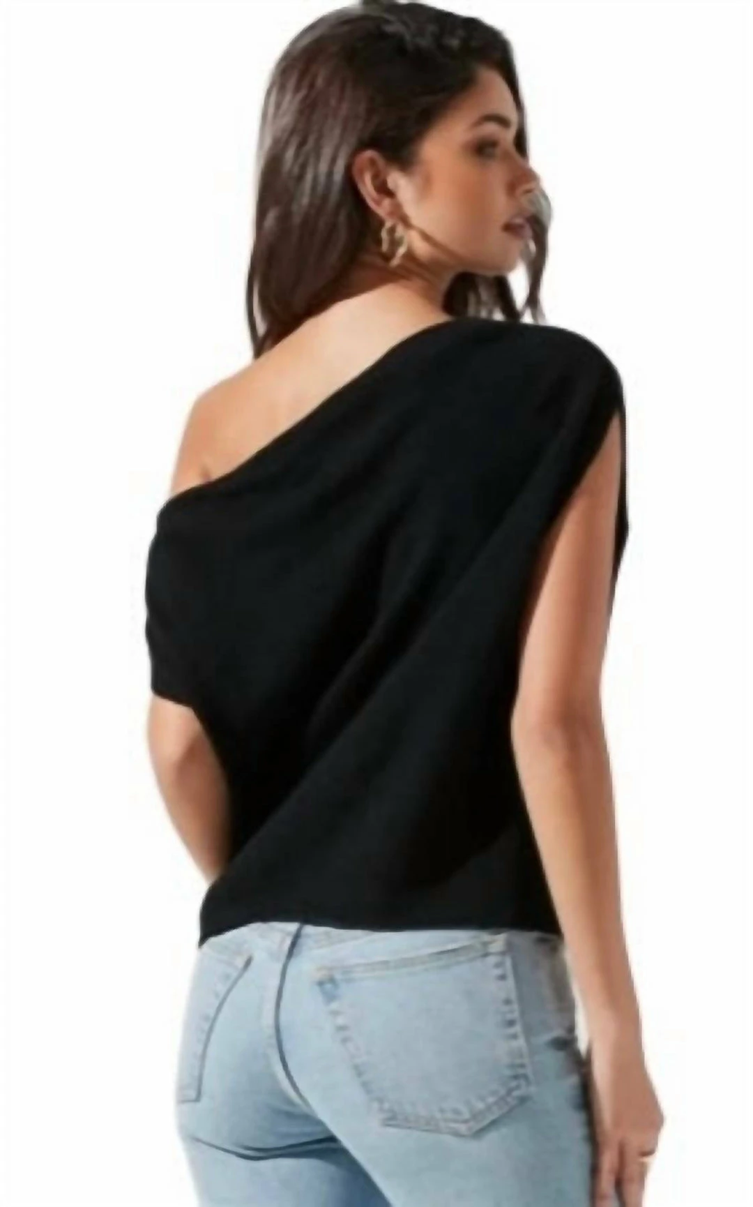 The Devin Sweater features a soft knit construction with a single shoulder neckline and draped silhouette.