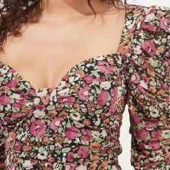 Astr women JADINE RUCHED FLORAL SWEETHEART MINI DRESS in Fuchsia-Rust Multi Floral