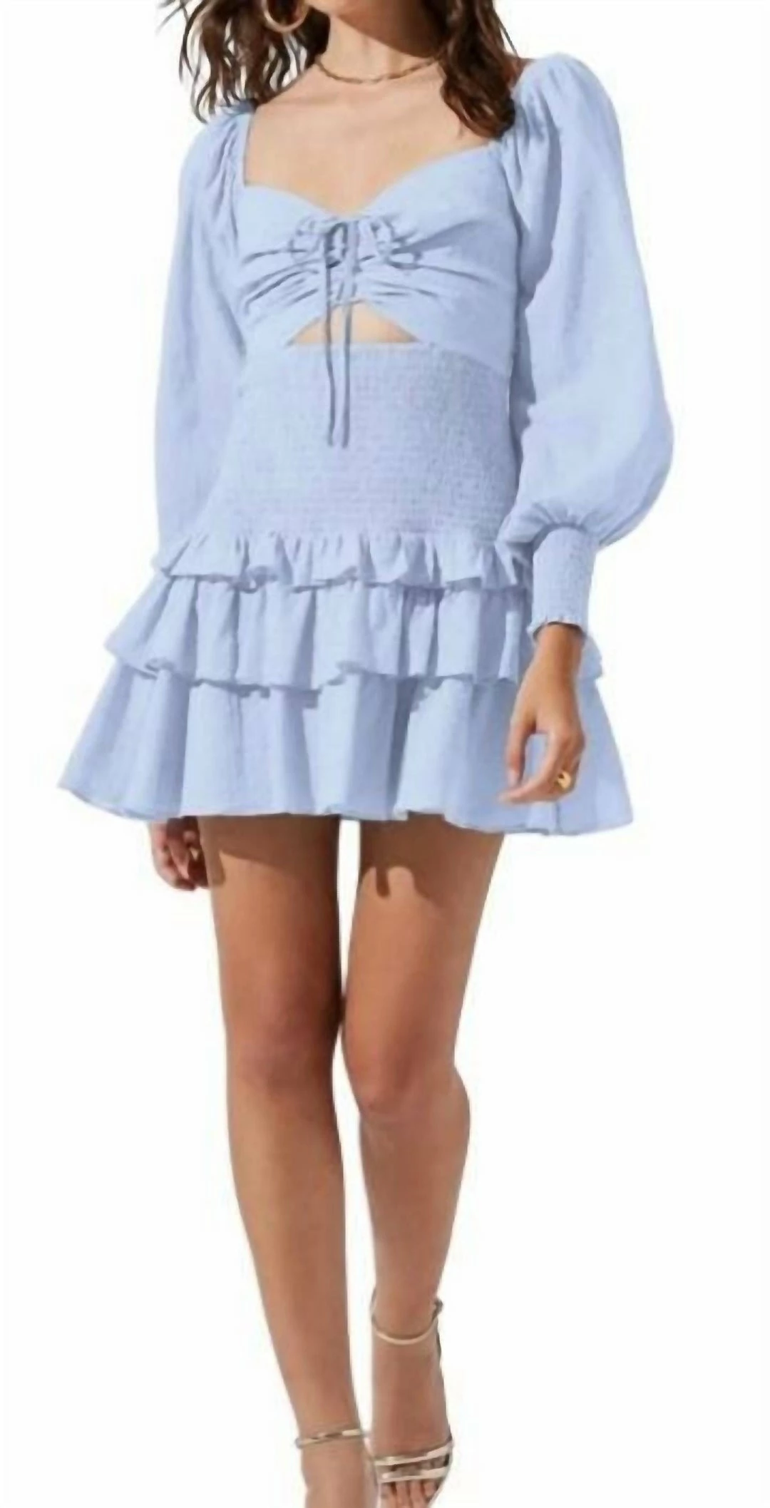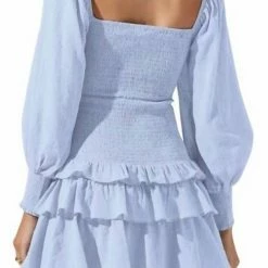 The stunning Marietta Dress features a sweetheart neckline that leads to a cinched bust and cutout accents. Smocked waist and tiered ruffle mini skirt. Smocked back. Long puff sleeves with smocked cuffs. Fully lined.