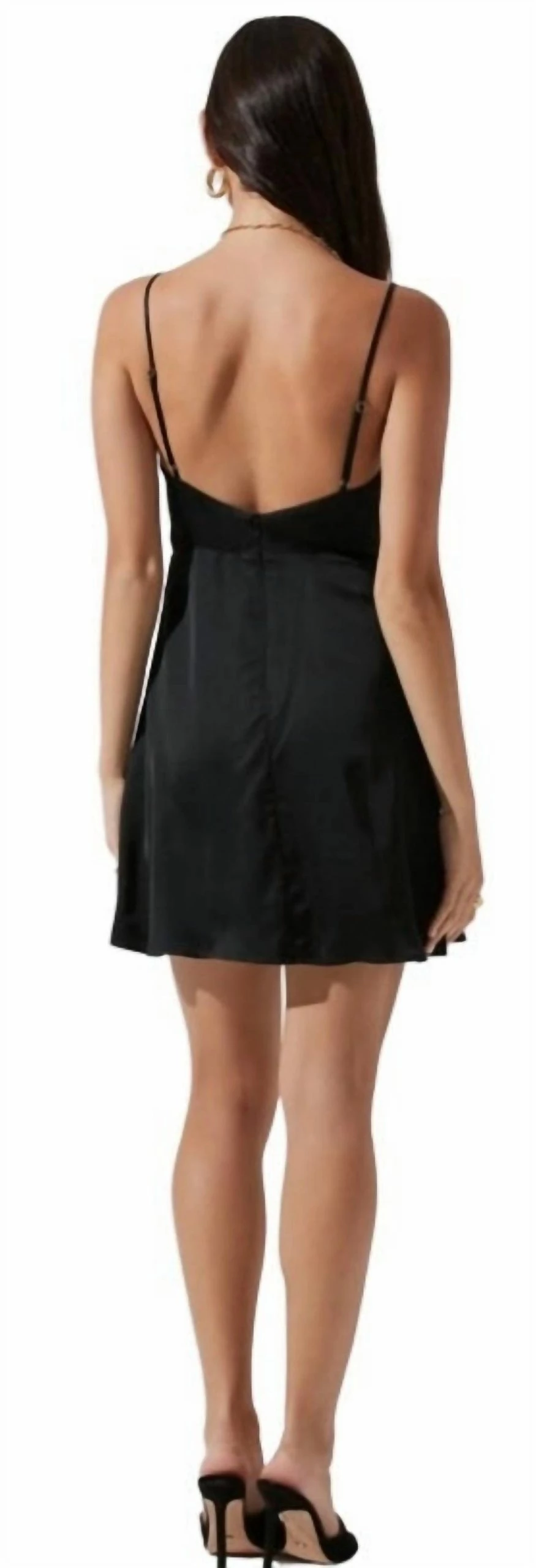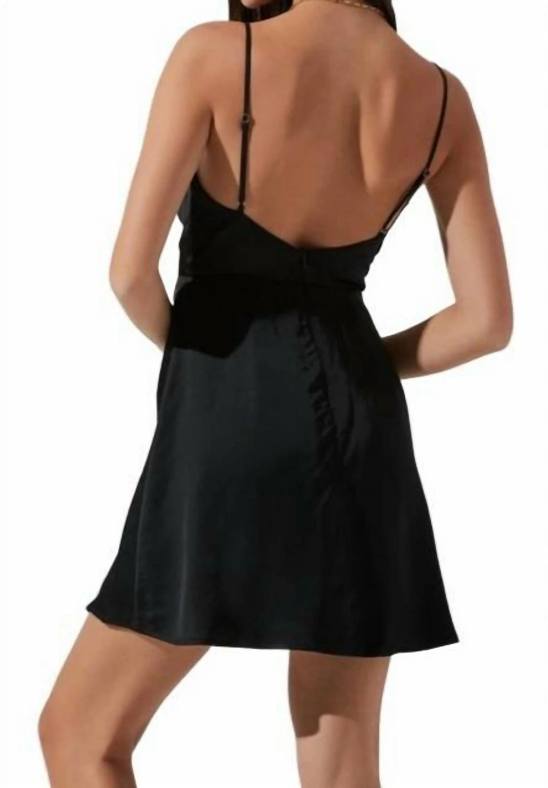 Instantly elevate your look with this satin mini dress. It features a plunge neckline that leads to a ruched front and abbreviated hem. Adjustable straps. Concealed back zip closure. Fully lined.