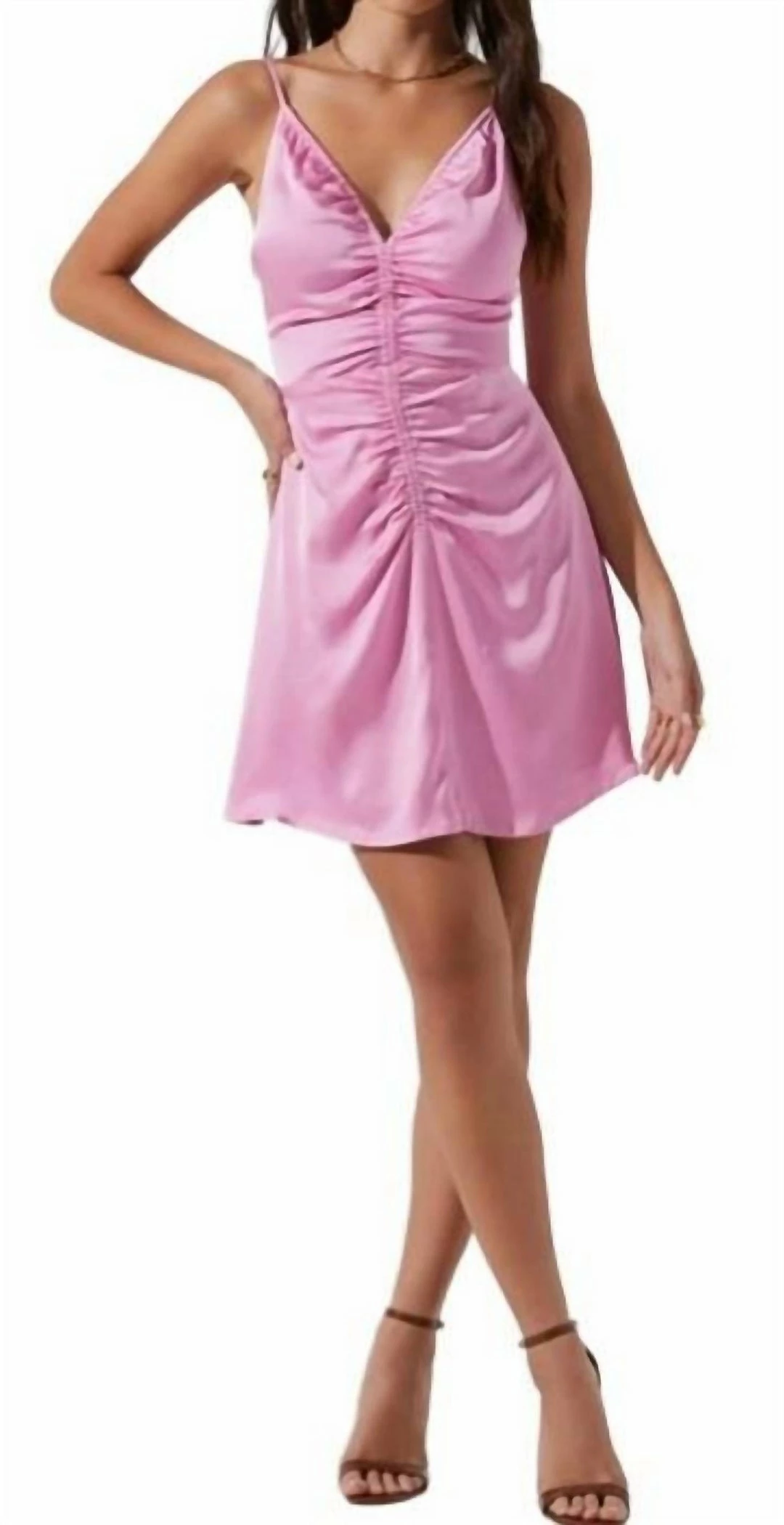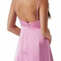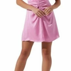 Instantly elevate your look with this satin mini dress. It features a plunge neckline that leads to a ruched front and abbreviated hem. Adjustable straps. Concealed back zip closure. Fully lined.