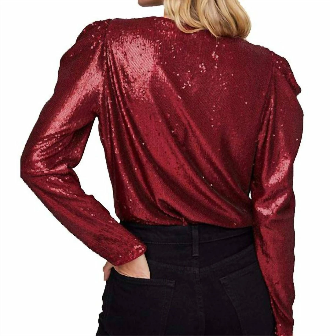 It features a plunging neckline and puff sleeves for major compliments!100% Polyester, Contrast – 100% Polyester, Lining – 100% PolyesterButton ClosureDry Clean OnlyLong SleevedSequinWrap Bodysuit