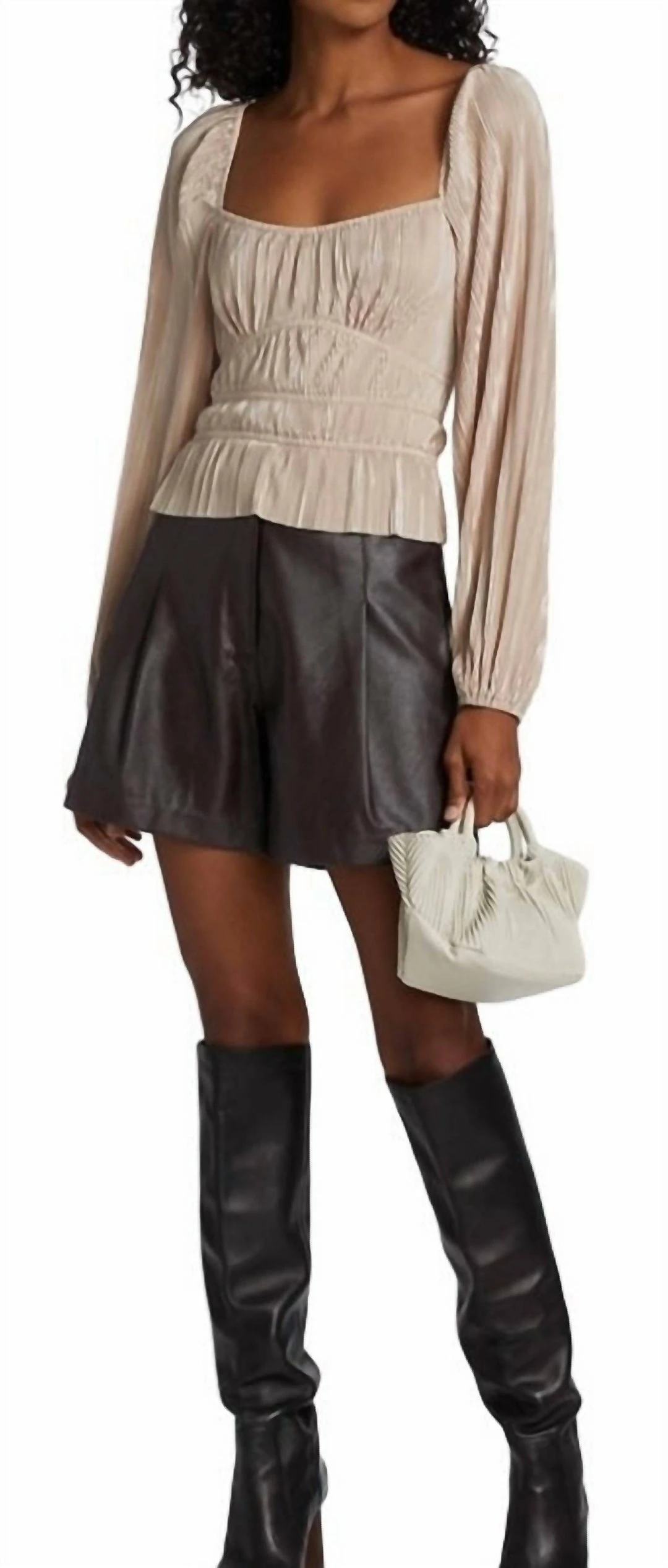 Crafted of vegan leather, ASTR The Label’s Wilma shorts are tailored with structured pleats.