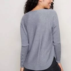 The lace-up eyelet detail, relaxed fit, and rounded hem keep this causal, yet stylish! The best part? This soft sweater for women is available in several colors!Details Long ribbed sleeves with cuff detail Two front pockets Rounded hemBoat necklineSizingS – 2-4 | M – 6-8 | L – 10-12 | XL – 14-16Fabric 51% Rayon 27% Polyester 22% Nylon Fit Relaxed