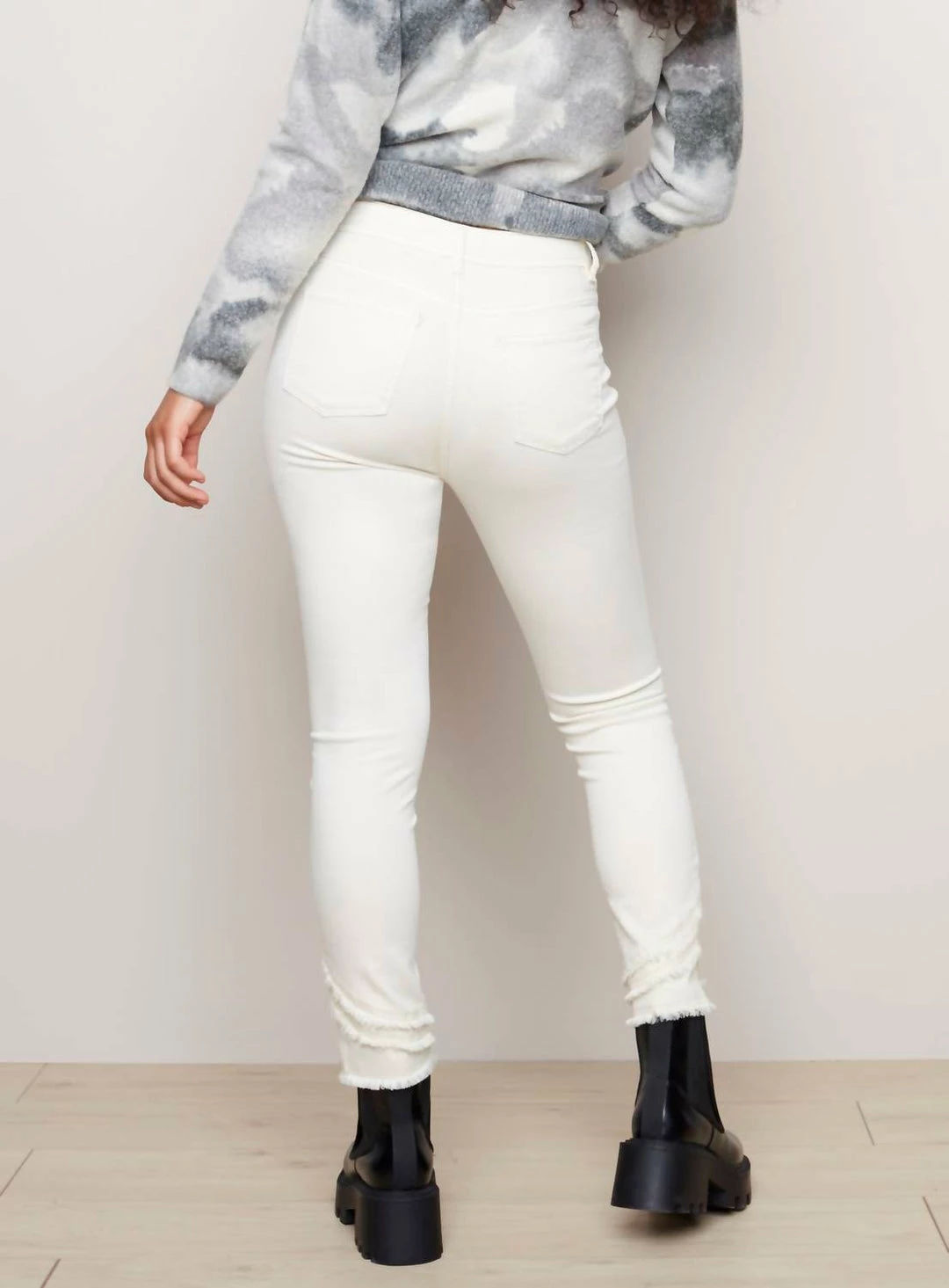 5 Pocket Jean. Side Hem Fringe Detail Leg