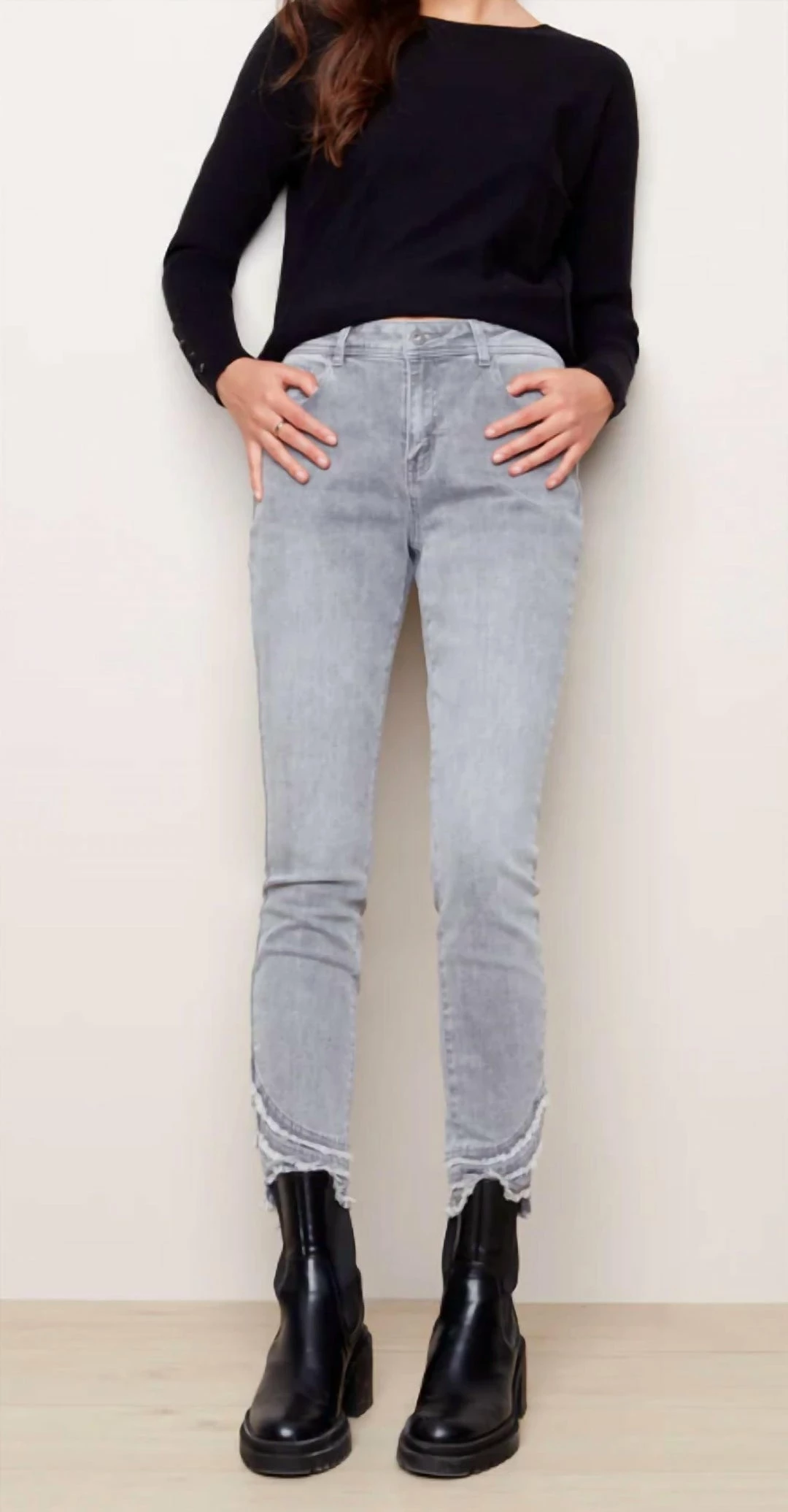 Charlie B women Frayed Hem Jean – C5273 in Lt Gray