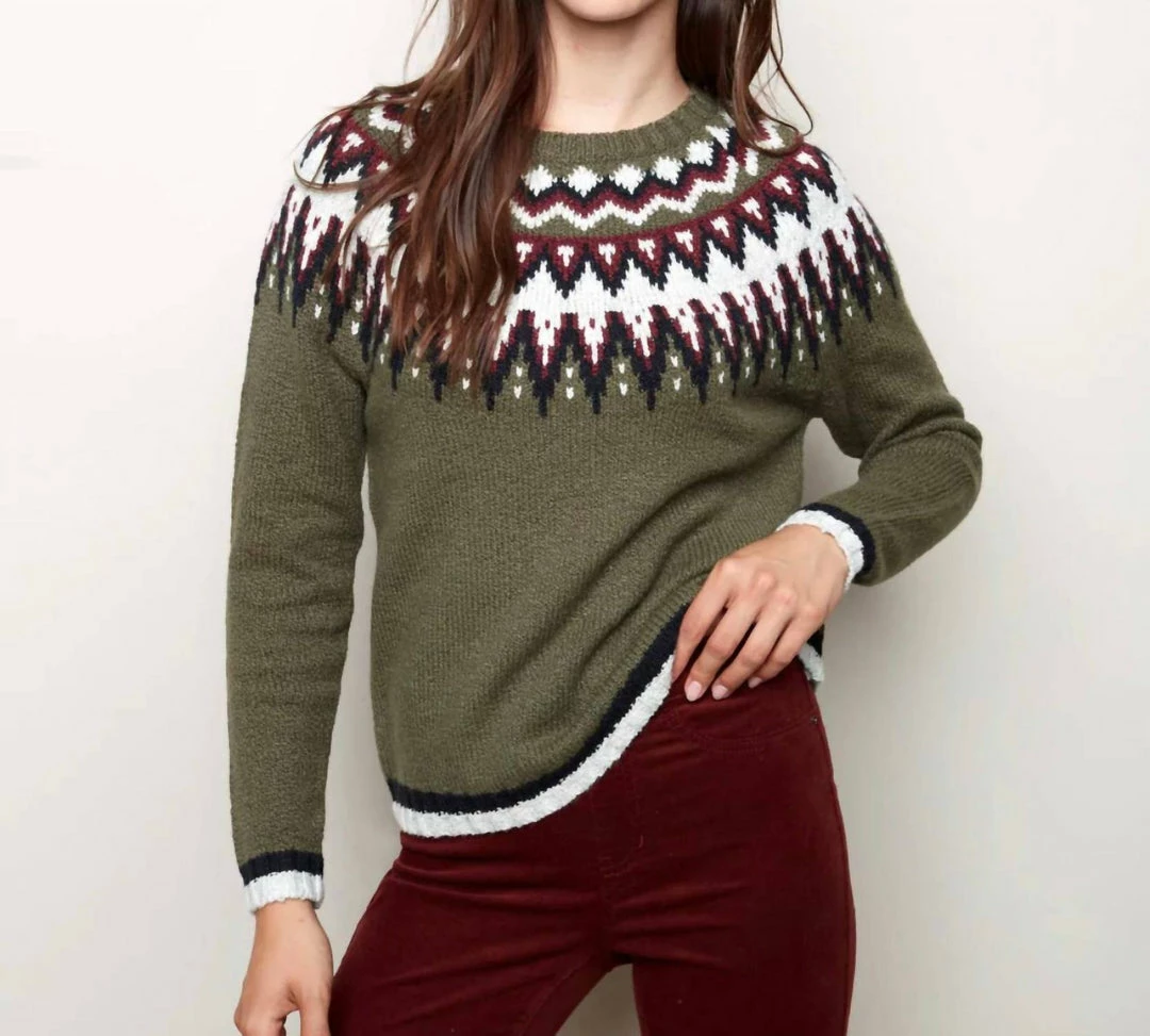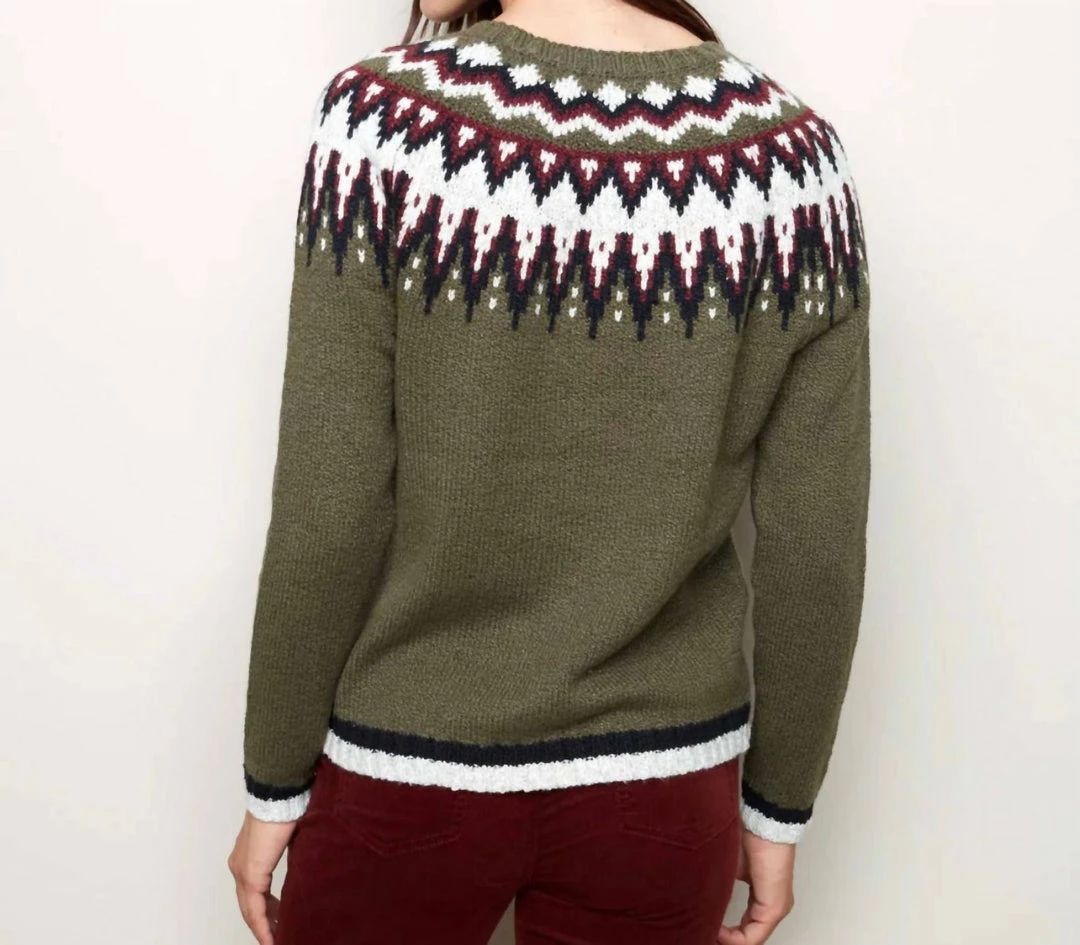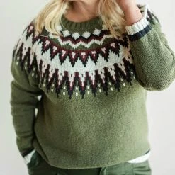 final saleCherish the fall weather in this soft Jacquard knit sweater for women. The pattern is a sure win, and the wide Crew neck and long Raglan sleeves will keep you comfortable and stylish. Pick this precious Pine green sweater.Long raglan sleevesJacquard knitCrew neckline