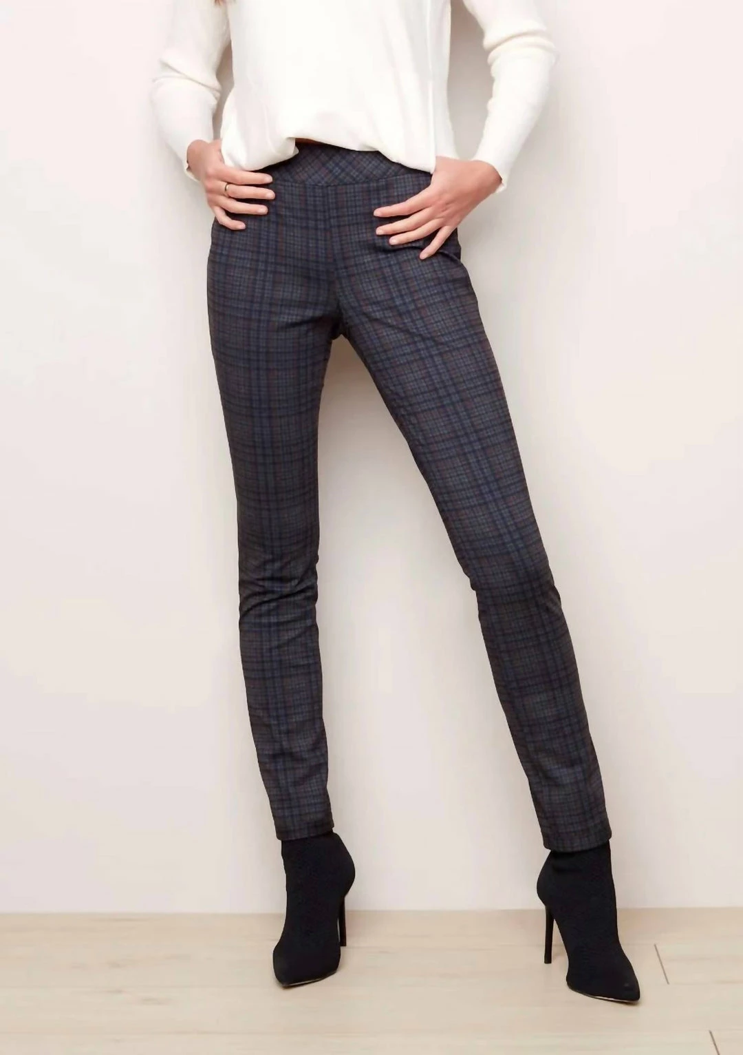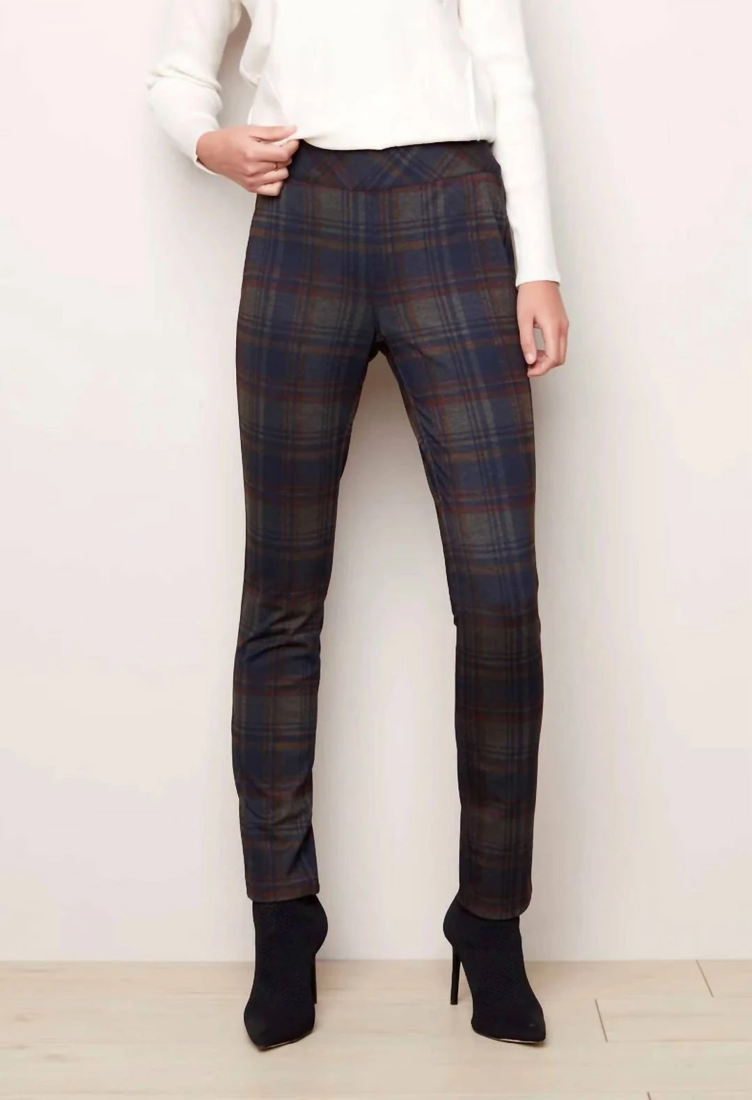 Charlie B women Reversible Plaid Pant in Marine/Navy