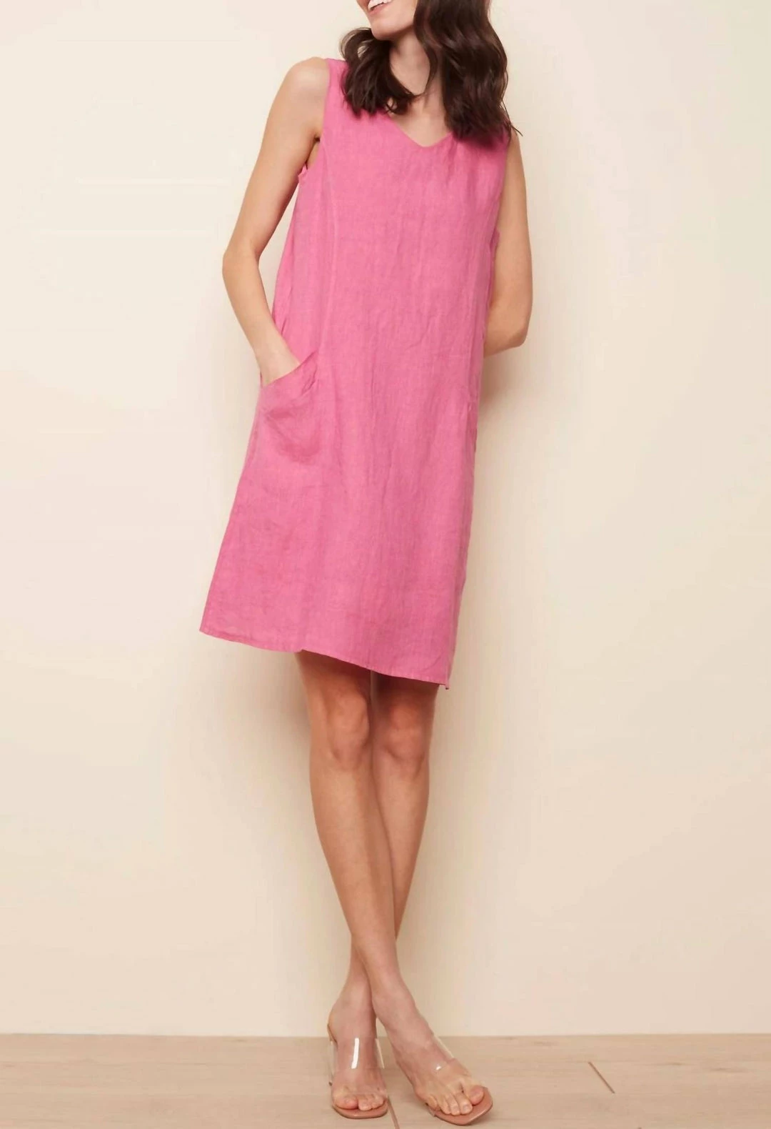 Charlie B women Sleeveless Linen V-Neck Dress In Fuschia