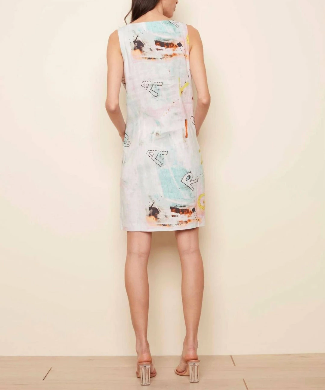 Charlie B women Sleeveless Printed Linen V-Neck Dress In Emerald