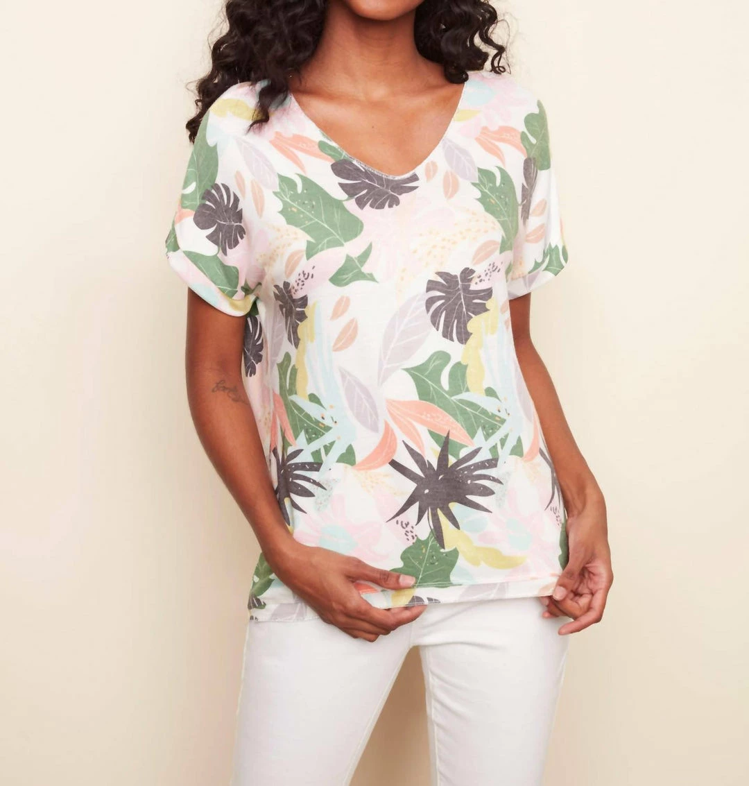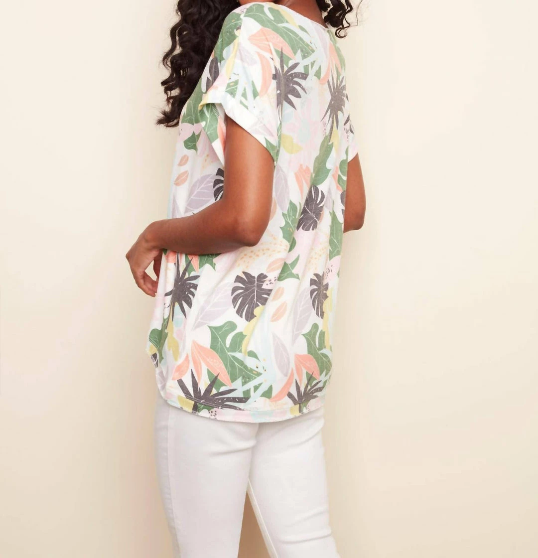 Charlie B women Tropical Short Sleeve Top in Multi
