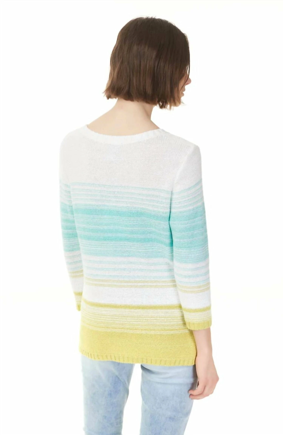 Charlie B women Yarn Sweater in White/Lime/Turquoise