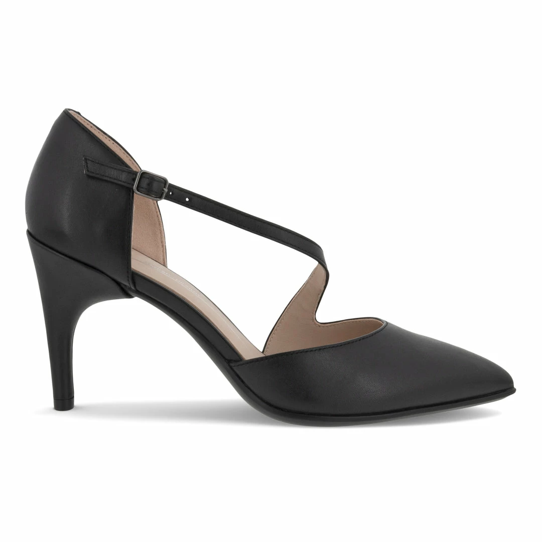 This version of the ECCO SHAPE STILETTO 75 is an asymmetric pump with a thin strap detail that elegantly crosses the top of the foot. The exquisite design lends the overall look of the heels a unique and elevated approach. Chic and highly sophisticated, these will stand out in a crowd no matter what the occasion.