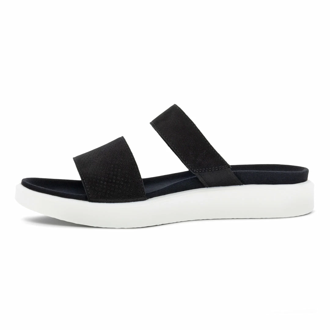 The ECCO YUMA Slide Sandal features two straps, of which the one closer to the ankle has concealed elastic insets for a flexible fit. This style has a tonal, microfiber-covered footbed for all-day wearability. With its contrasting sole and micro-perforated detailing, it offers understated elegance with the convenience of all-day wearability. These sandals will work seamlessly with a wide range of looks in your summer wardrobe.